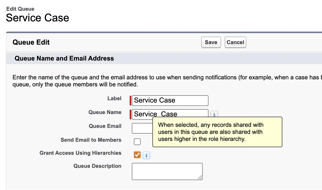 借助队列上新增的 “使用层级授予访问权限”设置,您可以精准控制该访问权限扩展到哪一层级。这让管理员在管理记录可见性时拥有更高灵活性,尤其适用于拥有多层级团队架构的大型企业组织。