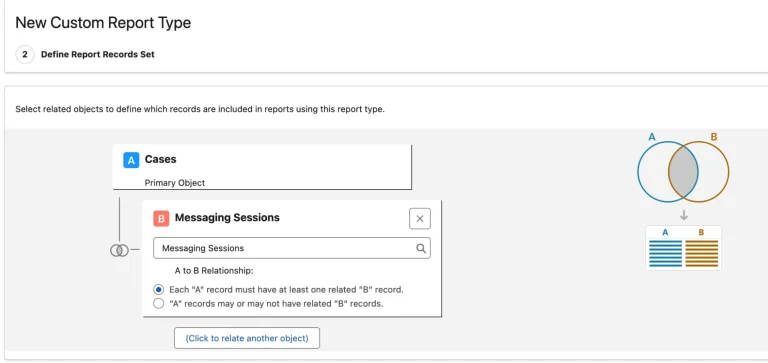 现在,在创建自定义报表类型时,您可以将“消息会话”选为“工单”的相关对象。这使得直接在工单的上下文中对消息活动进行报表分析成为可能,而这在以前的自定义报表类型中是不支持的。